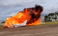 Пилот самолёта потерял управление после взрыва шины. Самолёт упал на крыло, взорвался и загорелся.© OneUkraine.net 2025