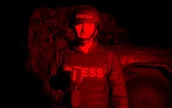 Российский дрон типа Ланцет атаковал военный автомобиль, когда съемочная группа работала в открытом поле.